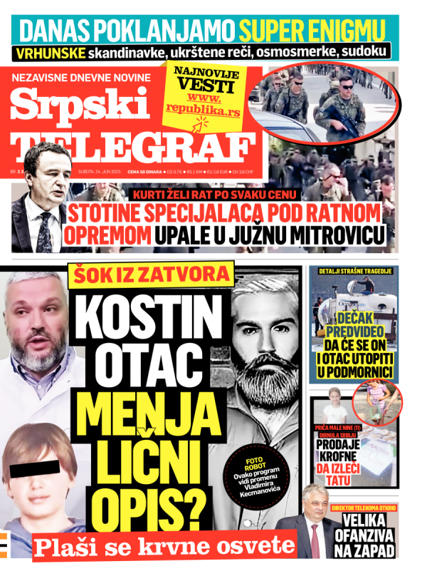 Naslovna strana Srpskog telegrafa za 24.06.2023.