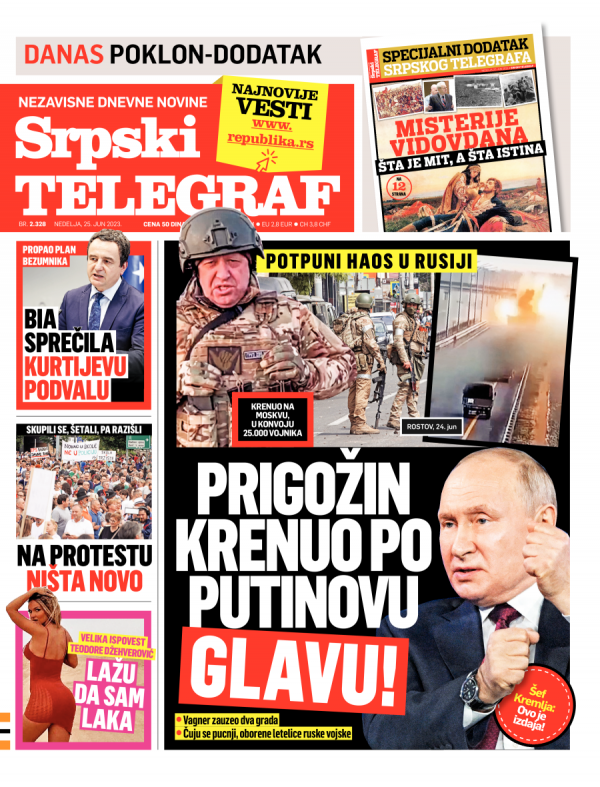 Naslovna strana Srpskog telegrafa za 25.06.2023.