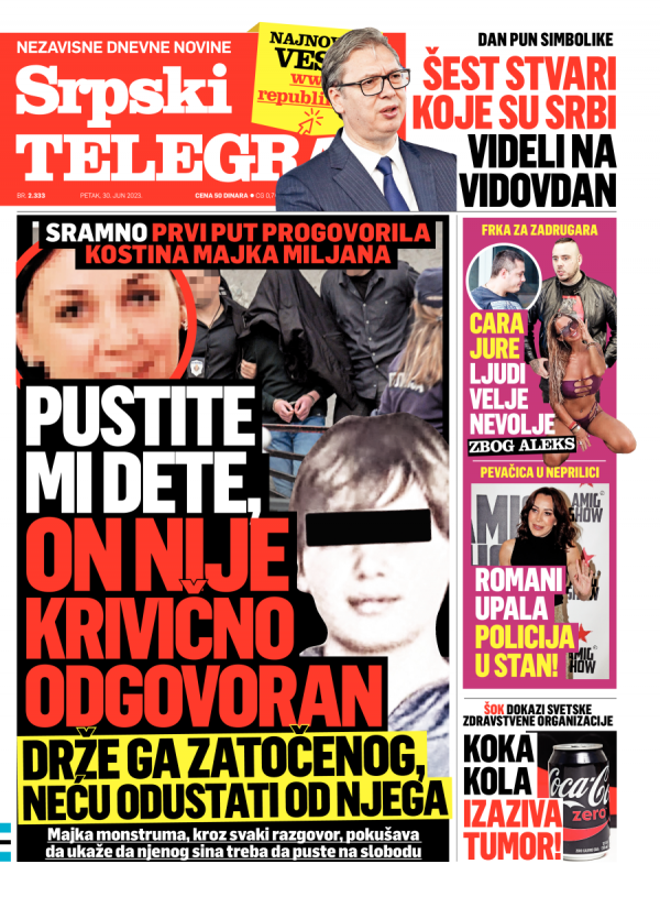 Naslovna strana Srpskog telegrafa za 30.06.2023.