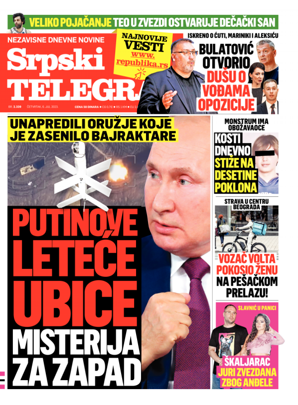 Naslovna strana Srpskog telegrafa za 06.07.2023.