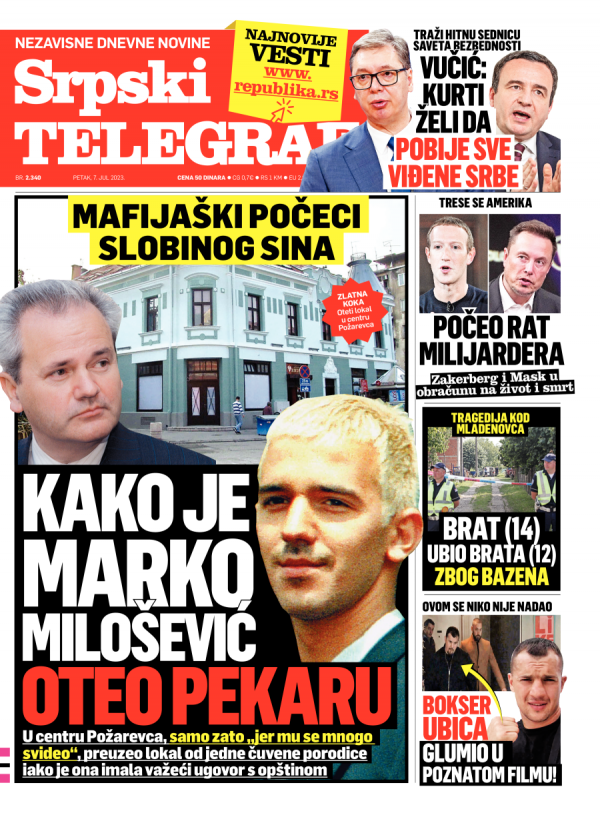 Naslovna strana Srpskog telegrafa za 07.07.2023.