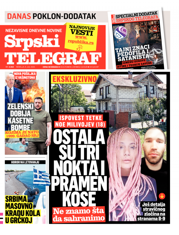 Naslovna strana Srpskog telegrafa za 09.07.2023.