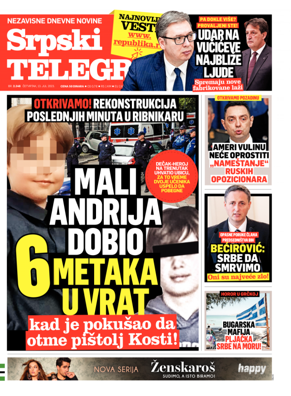 Naslovna strana Srpskog telegrafa za 13.07.2023.
