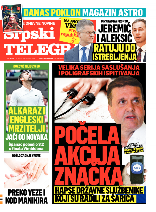 Naslovna strana Srpskog telegrafa za 17.07.2023.