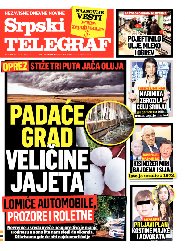 Naslovna strana Srpskog telegrafa za 21.07.2023.