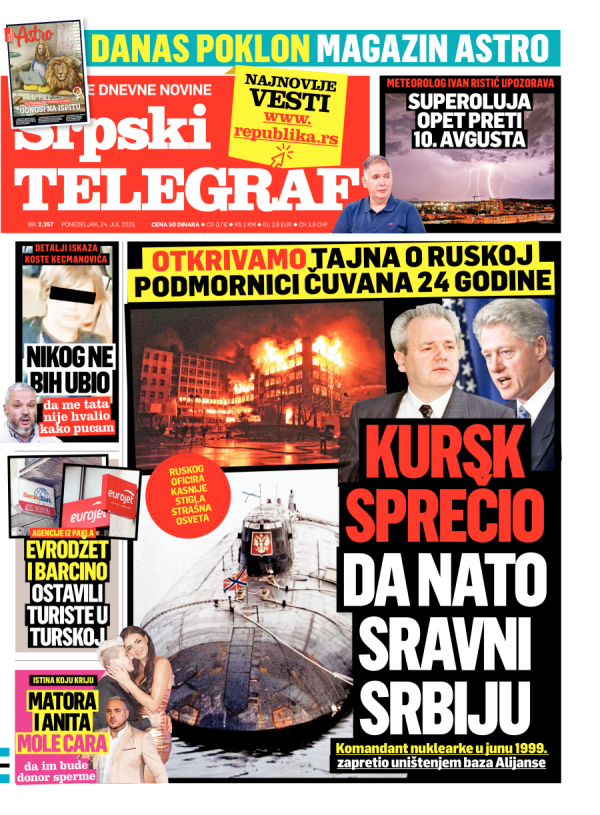 Naslovna strana Srpskog telegrafa za 24.07.2023.