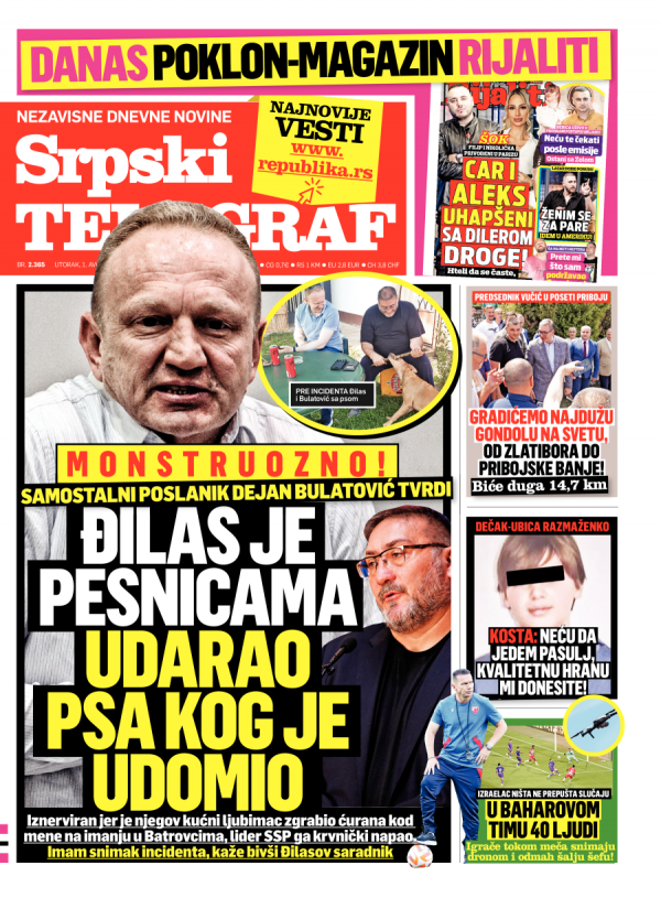 Naslovna strana Srpskog telegrafa za 01.08.2023.