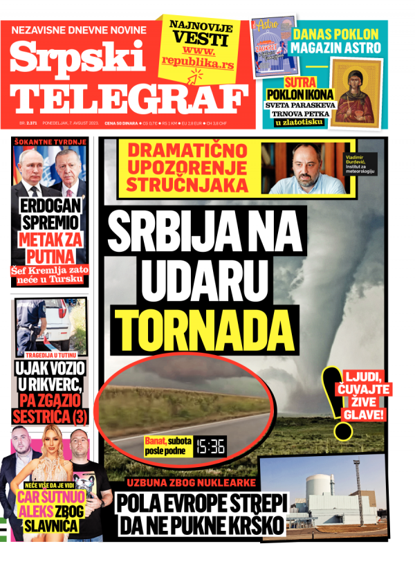 Naslovna strana Srpskog telegrafa za 07.08.2023.