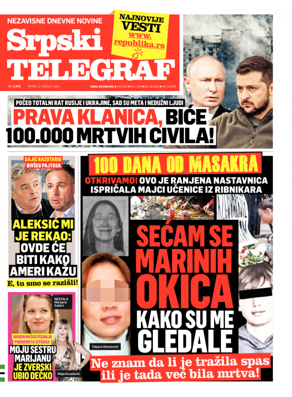Naslovna strana Srpskog telegrafa za 11.08.2023.