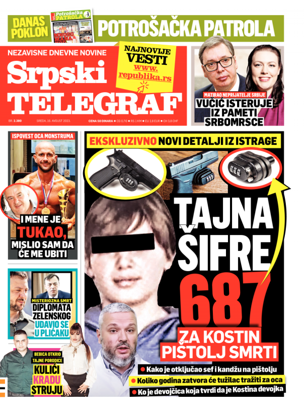 Naslovna strana Srpskog telegrafa za 16.08.2023.