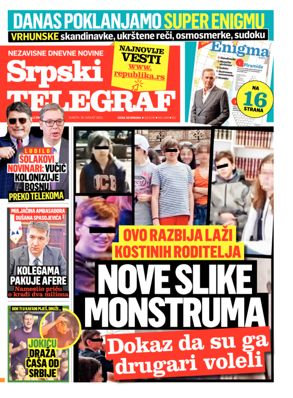 Naslovna strana Srpskog telegrafa za 26.08.2023.