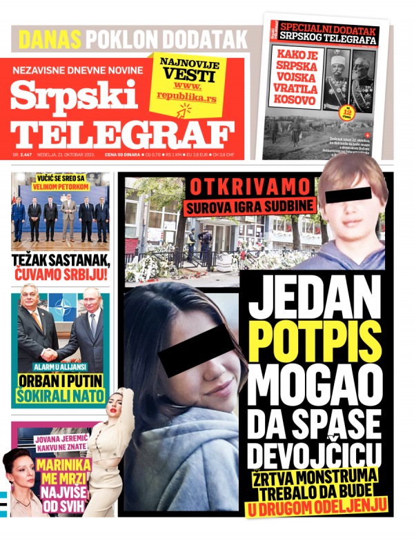Naslovna strana Srpskog telegrafa za 22.10.2023.