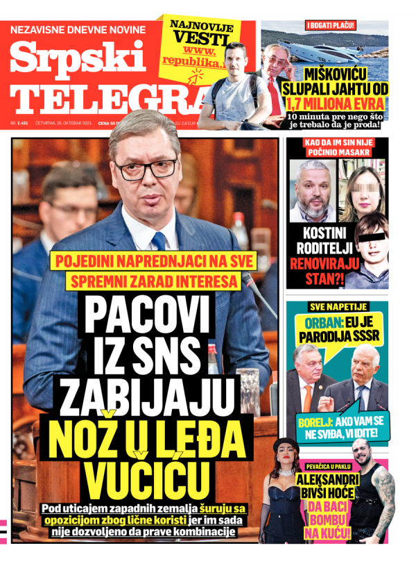 Naslovna strana Srpskog telegrafa za 26.10.2023.
