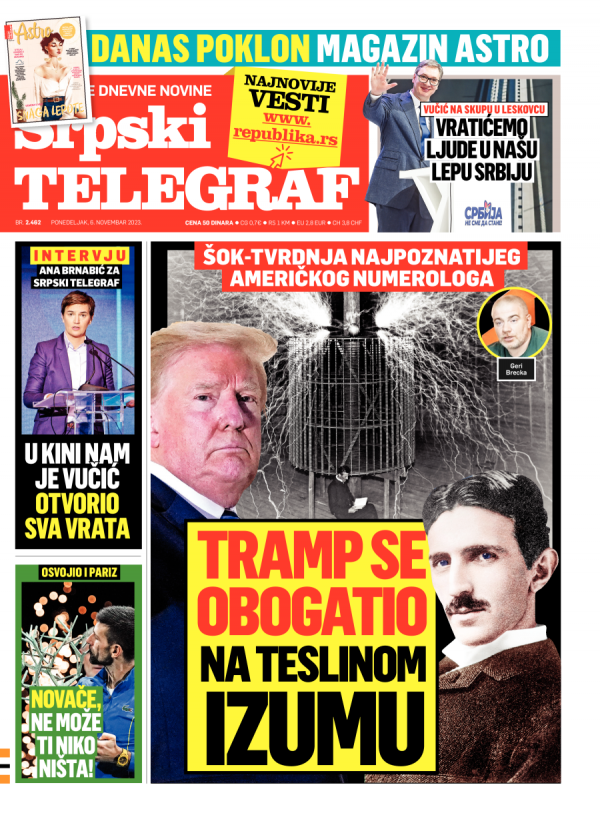 Naslovna strana Srpskog telegrafa za 06.11.2023.