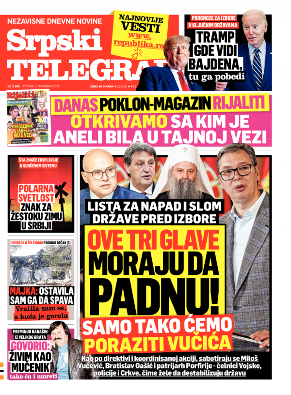 Naslovna strana Srpskog telegrafa za 07.11.2023.