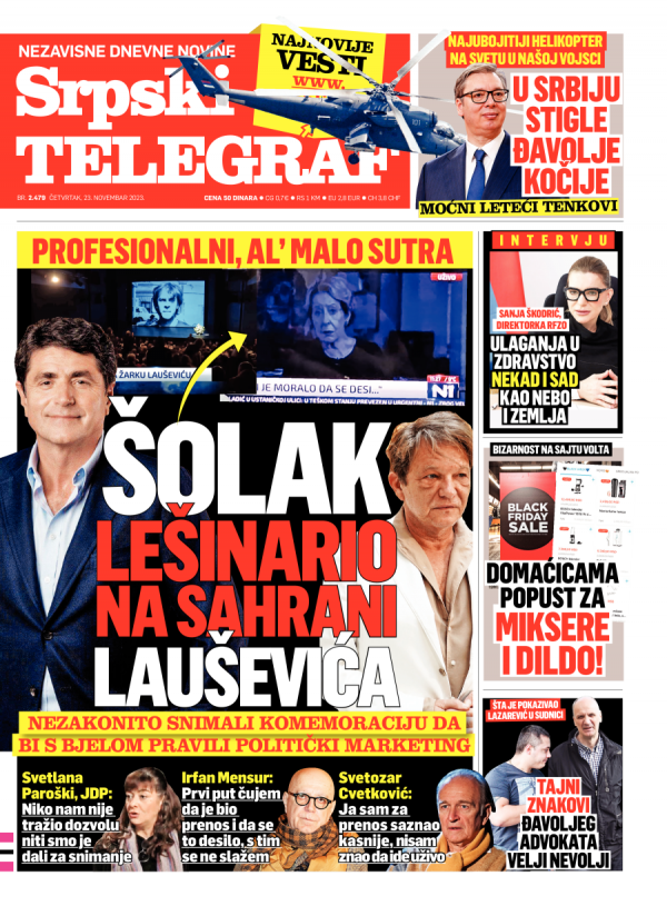 Naslovna strana Srpskog telegrafa za 23.11.2023.