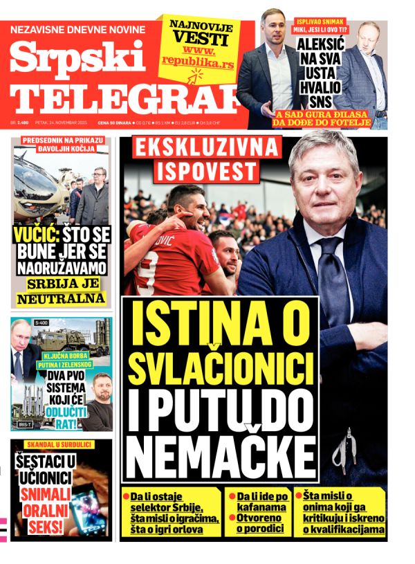 Naslovna strana Srpskog telegrafa za 24.11.2023.