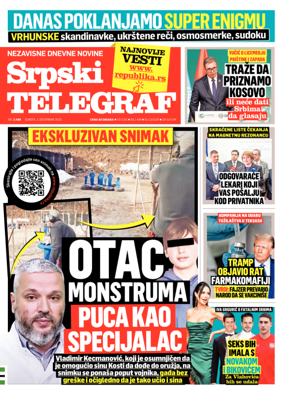Naslovna strana Srpskog telegrafa za 02.12.2023.