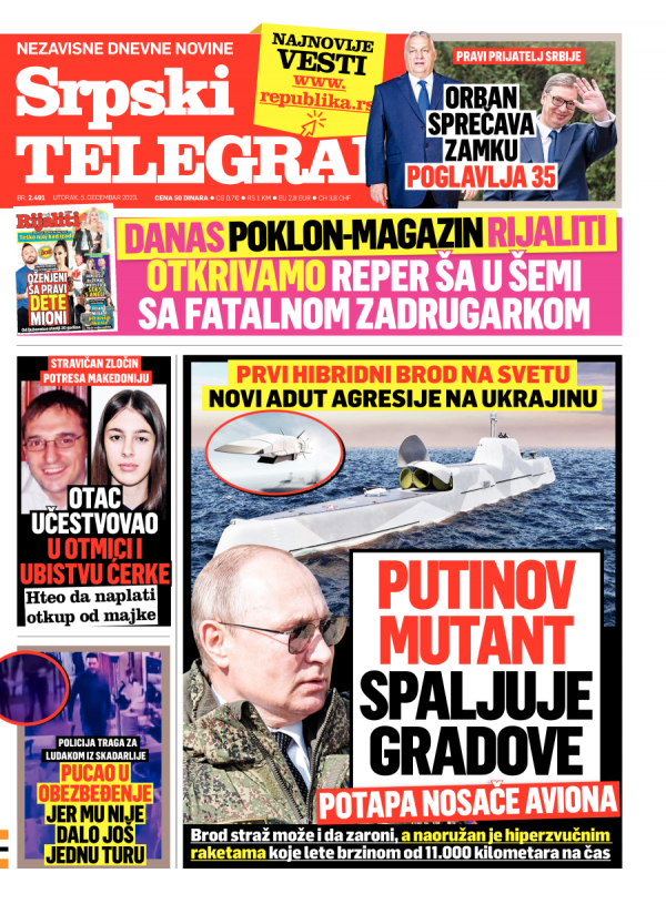 Naslovna strana Srpskog telegrafa za 05.12.2023.