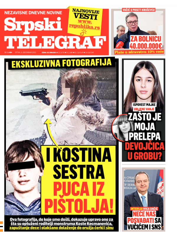 Naslovna strana Srpskog telegrafa za 08.12.2023.