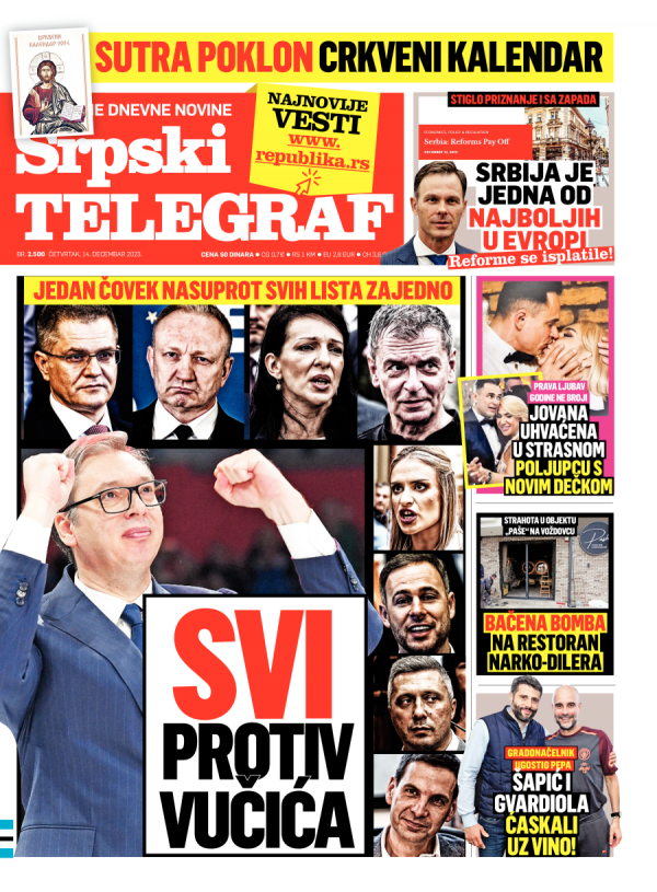 Naslovna strana Srpskog telegrafa za 14.12.2023.