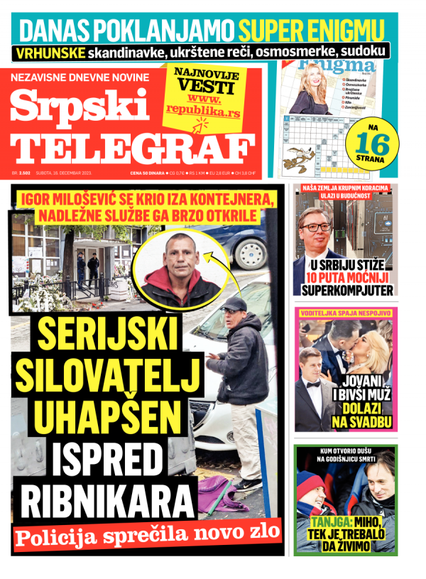 Naslovna strana Srpskog telegrafa za 16.12.2023.