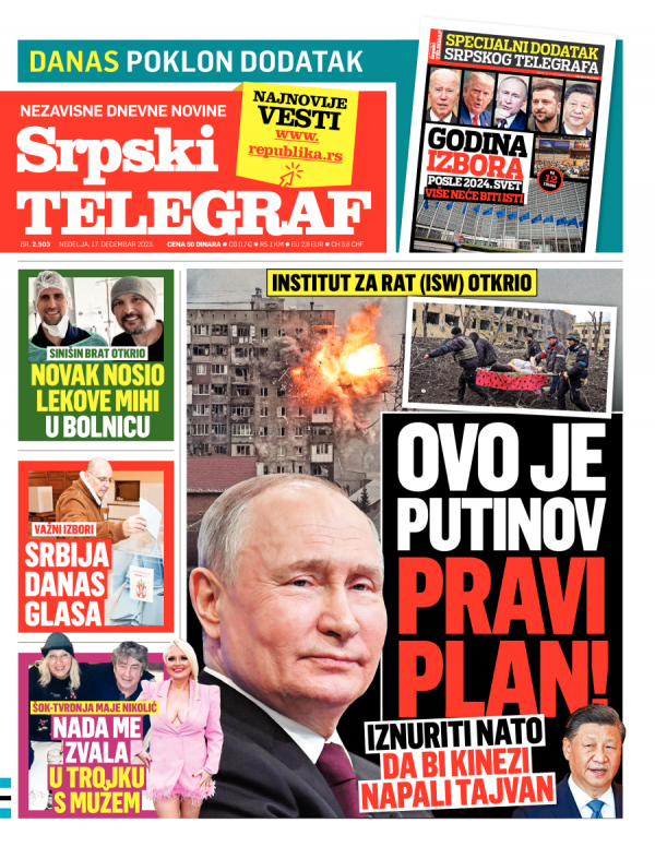 Naslovna strana Srpskog telegrafa za 17.12.2023.