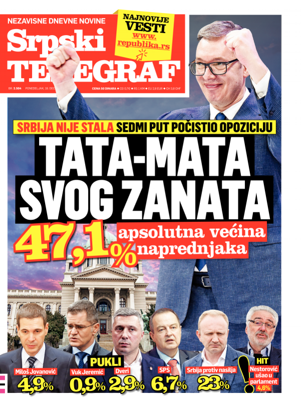 Naslovna strana Srpskog telegrafa za 18.12.2023.