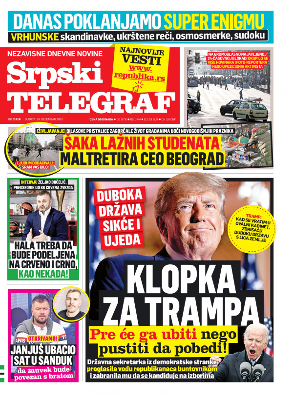 Naslovna strana Srpskog telegrafa za 30.12.2023.