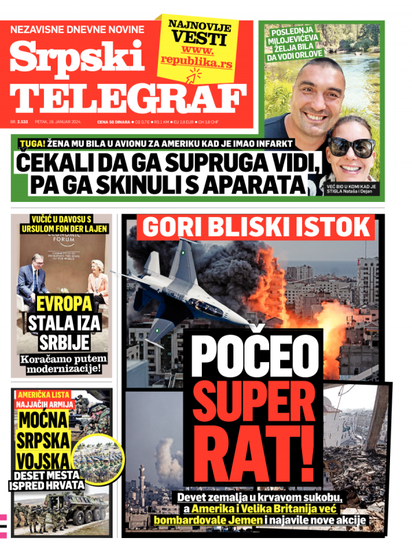 Naslovna strana Srpskog telegrafa za 19.01.2024.