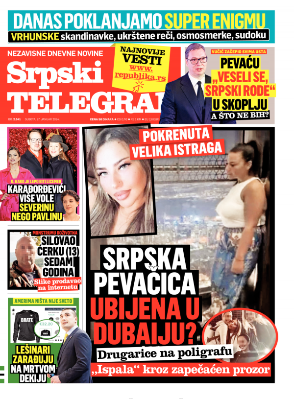 Naslovna strana Srpskog telegrafa za 27.01.2024.