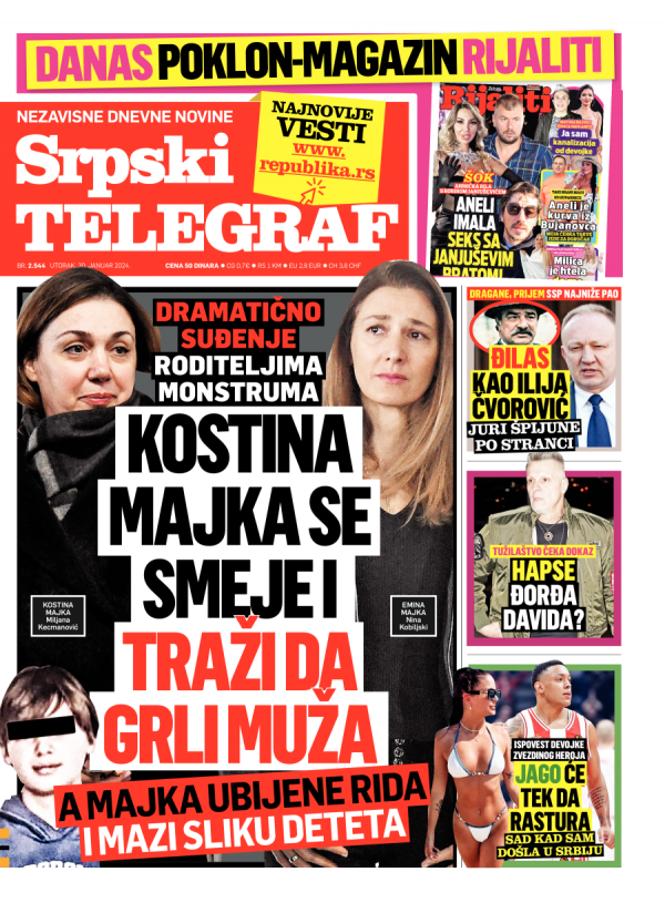 Naslovna strana Srpskog telegrafa za 30.01.2024.
