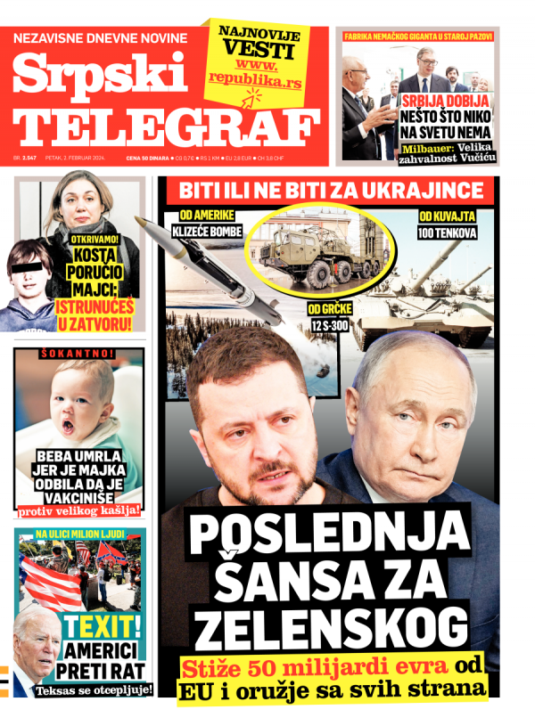 Naslovna strana Srpskog telegrafa za 02.02.2024.