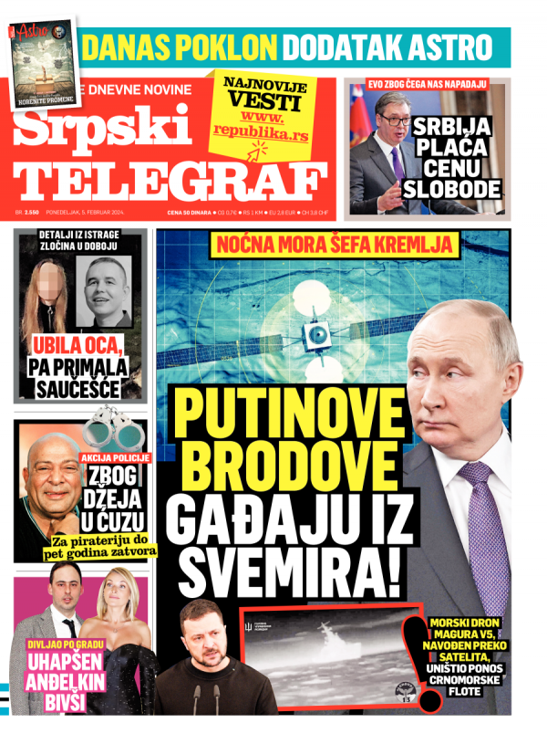 Naslovna strana Srpskog telegrafa za 05.02.2024.