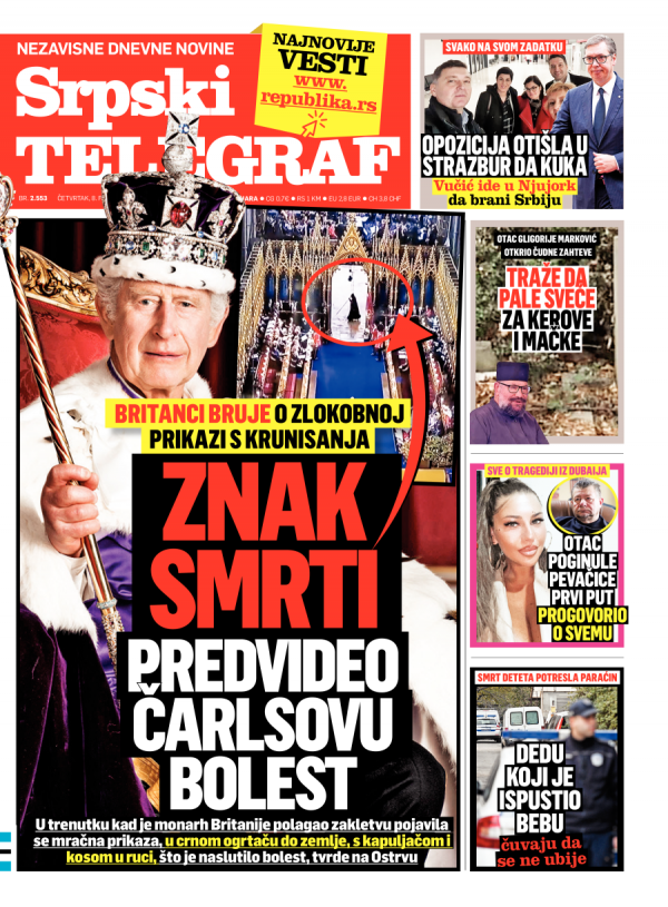 Naslovna strana Srpskog telegrafa za 08.02.2024.