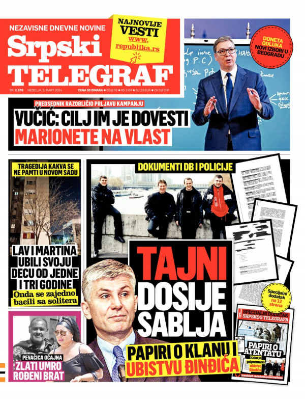 Naslovna strana Srpskog telegrafa za 03.03.2024.