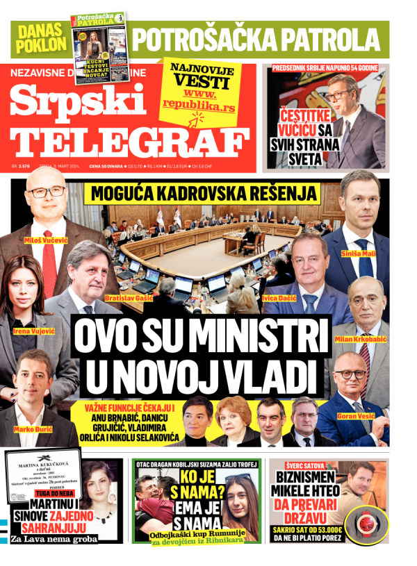 Naslovna strana Srpskog telegrafa za 06.03.2024.