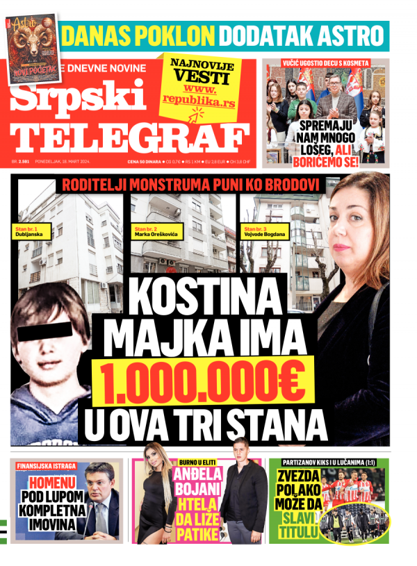 Naslovna strana Srpskog telegrafa za 18.03.2024.