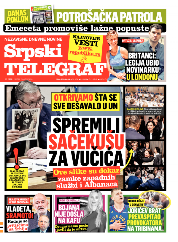 Naslovna strana Srpskog telegrafa za 24.04.2024.
