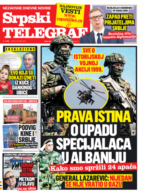 Naslovna strana Srpskog telegrafa za 26.04.2024.