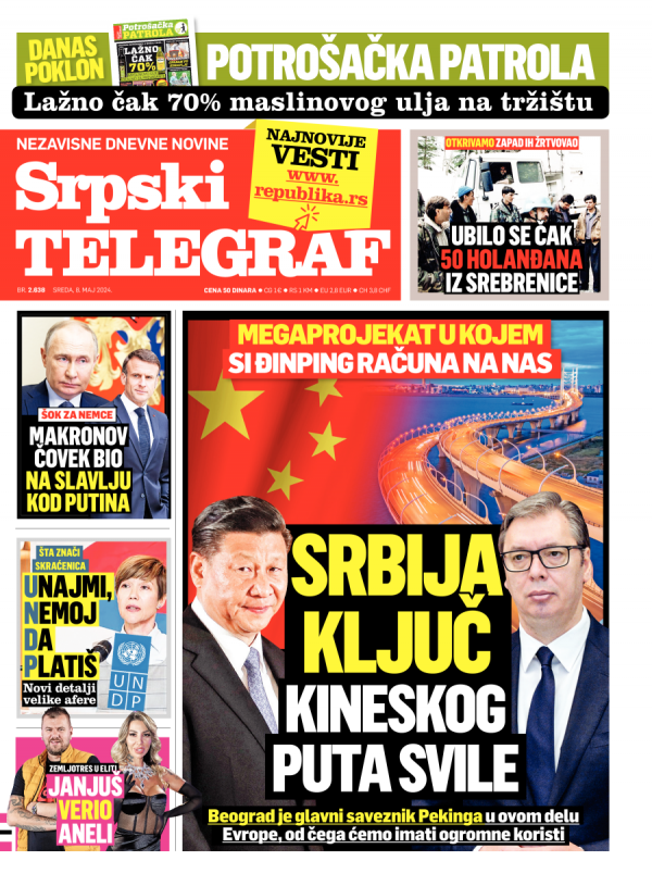 Naslovna strana Srpskog telegrafa za 08.05.2024.