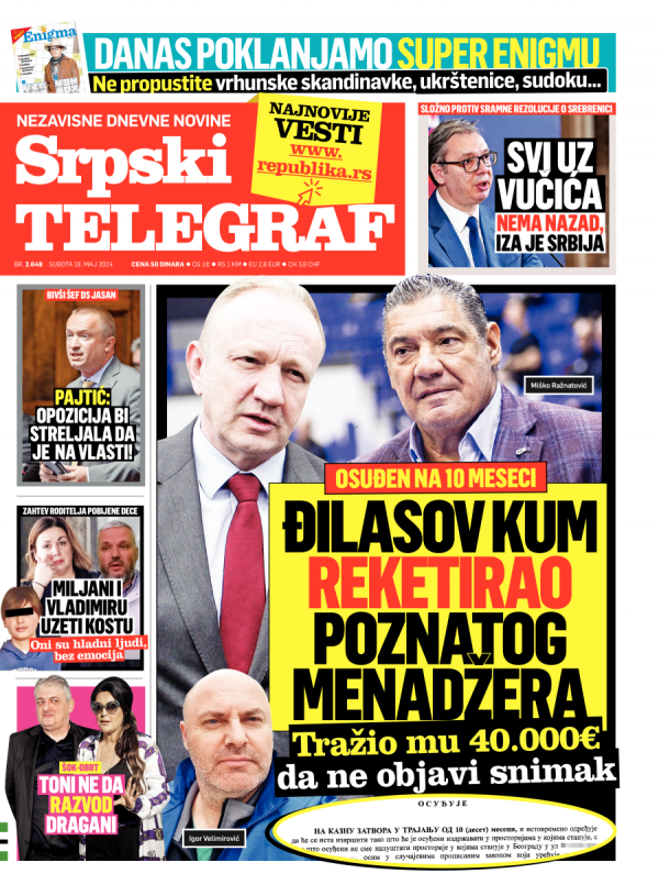 Naslovna strana Srpskog telegrafa za 18.05.2024.