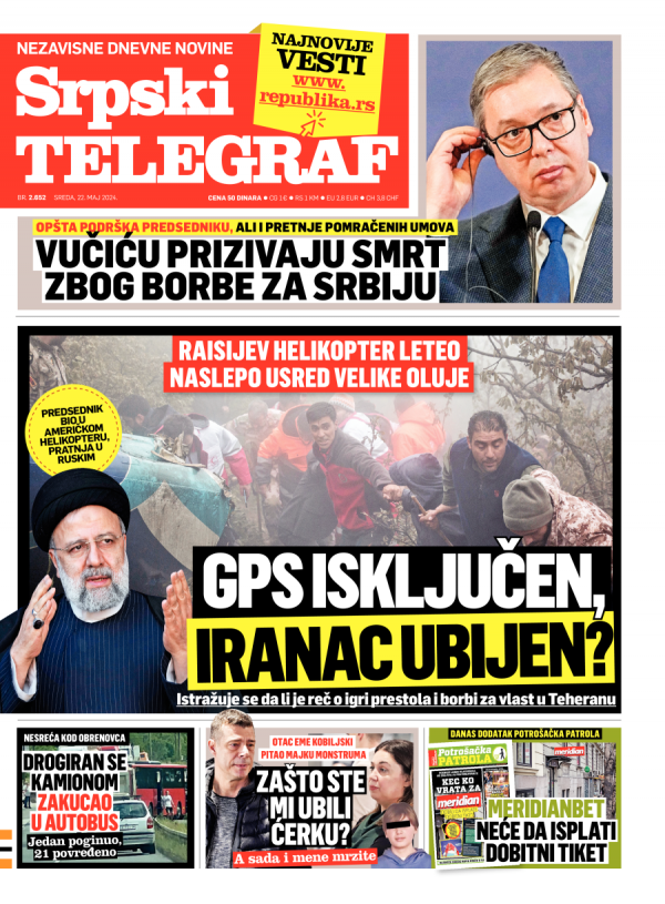 Naslovna strana Srpskog telegrafa za 22.05.2024.