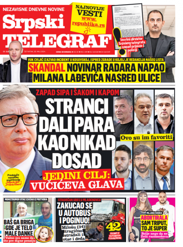 Naslovna strana Srpskog telegrafa za 30.05.2024.