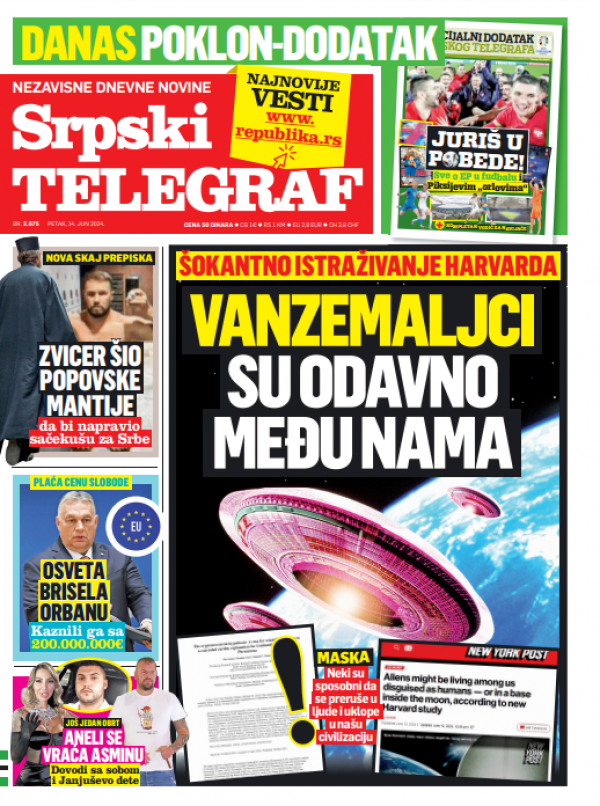 Naslovna strana Srpskog telegrafa za 14.06.2024.