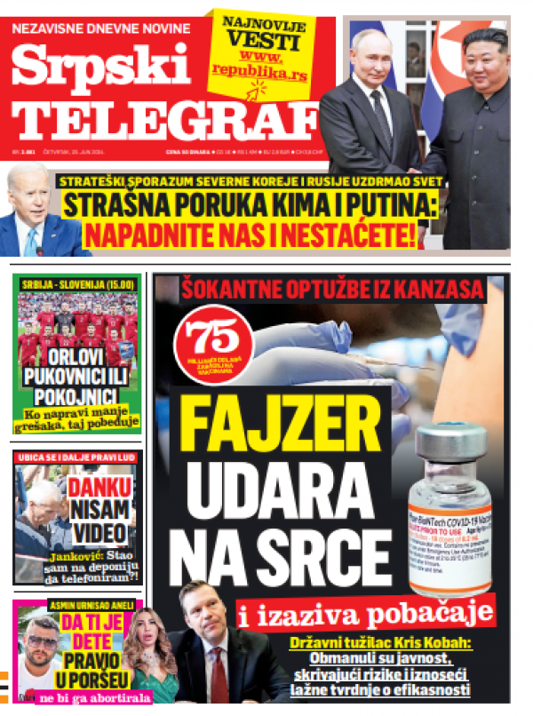 Naslovna strana Srpskog telegrafa za 20.06.2024.