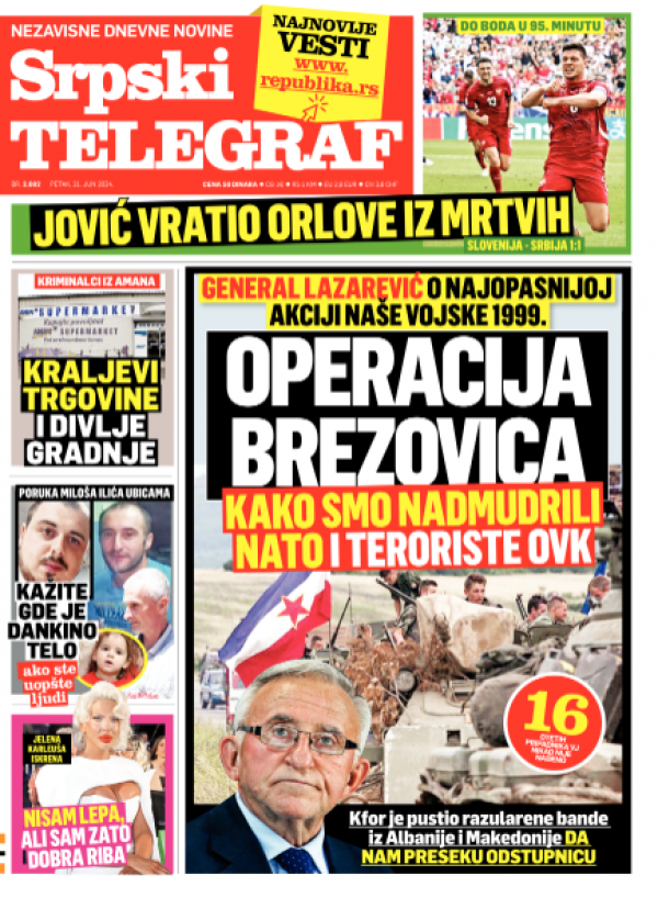 Naslovna strana Srpskog telegrafa za 21.06.2024.