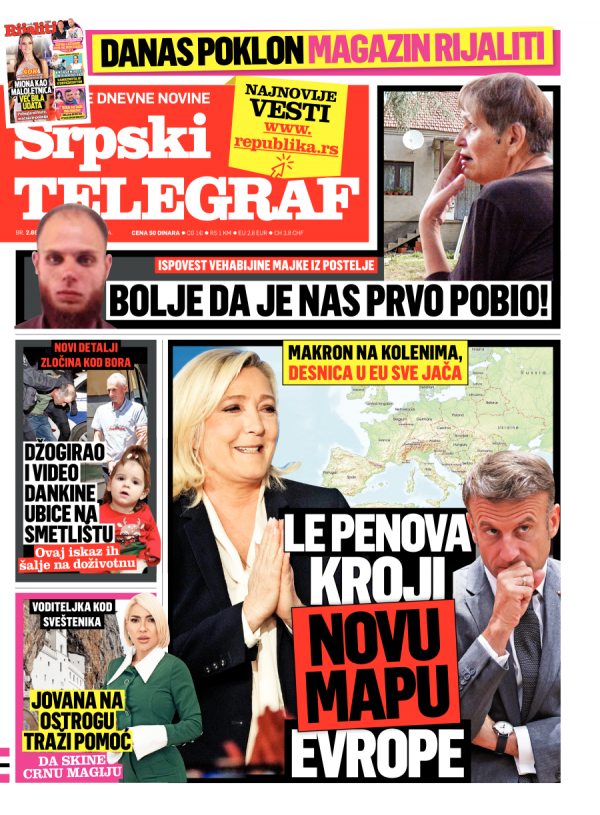 Naslovna strana Srpskog telegrafa za 02.07.2024.