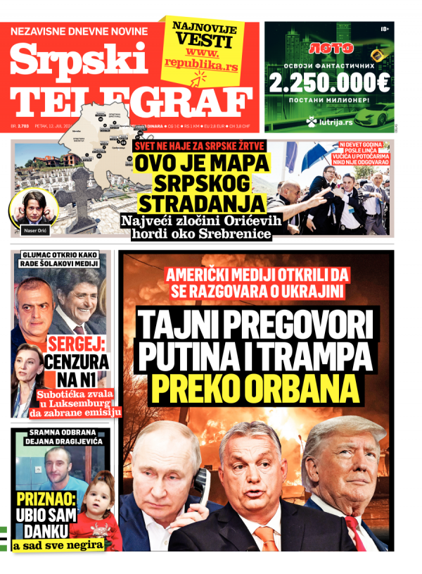 Naslovna strana Srpskog telegrafa za 12.07.2024.