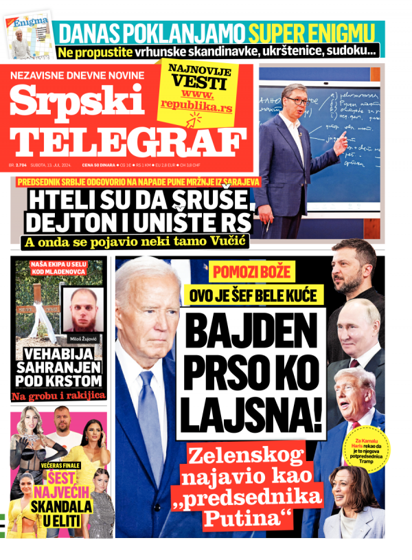 Naslovna strana Srpskog telegrafa za 13.07.2024.